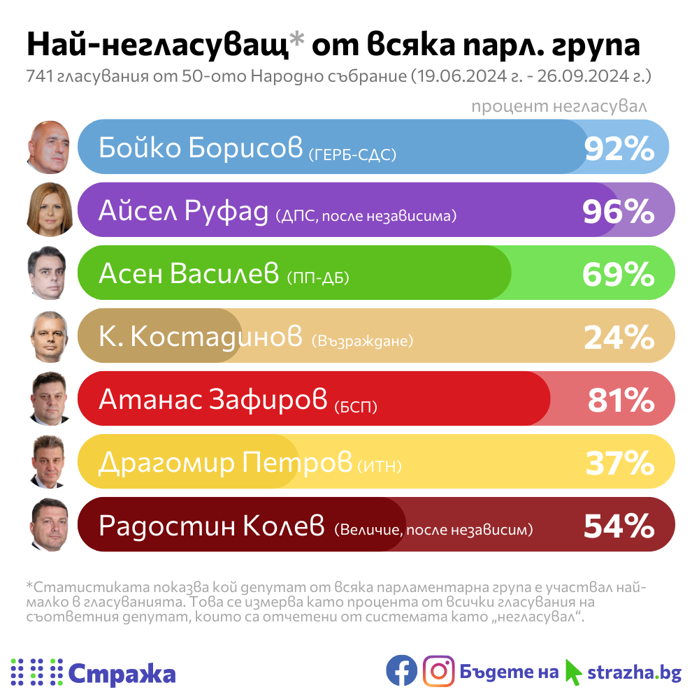 Също е интересно да разгледаме и кой е най-негласуващият от всяка парламентарна група.