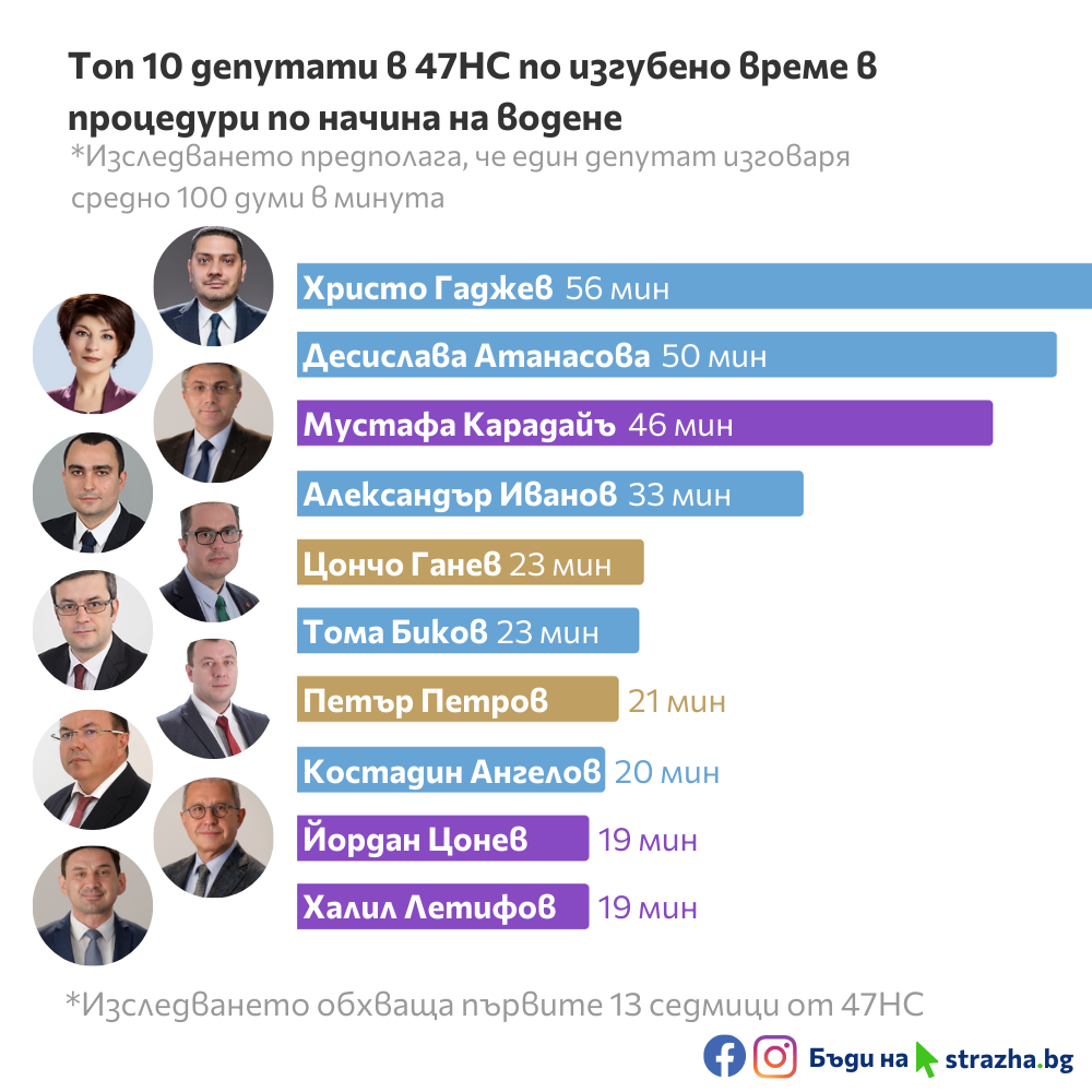 Съвсем очаквано най-активните народни представители са от опозицията. В класацията обаче прави впечатление отсъствието на депутати от най-голямата ПГ в 47-ото НС – „Продължаваме промяната“, като това до голяма степен се дължи на тяхната младост и неопитност.